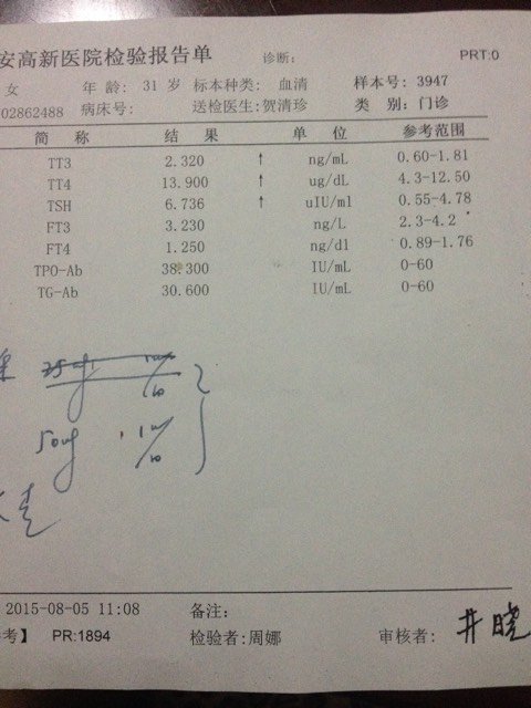 t3t4tsh比正常范围都高出1~2,吃了半个月优甲乐,半片每日,tsh没降反而升了0.2,什么情 t3t4tsh比正常范围都高出1~2,吃了半个月优甲乐,半片每日,tsh没降反而升了0.2,什么情况呢? 点击展开 桃、夭夭 2015-08-05 23:14 为您推荐: 其他回答 可能是计量不够 金豆豆宝宝 2015-08-07 10:31 问下医生~~ stockybaby 2015-08-07 08:25 问下医生吧 hl411381 2015-08-06 22:38 不清楚,, 万小鹏 2015-08-06 20:36 医生建议哦 135*****593_hw79 2015-08-06 20:21 加载更多 相关问题 T3T4在正常范围内,TSH偏高是不是继续服用优甲乐? 怀孕22周,TSh5 8,是否能吃优甲乐?如何服用呢? 吃优甲乐的病人,多久化验一次T3T4TSH为宜