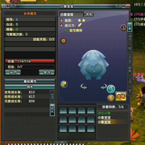 这两只无法繁殖,这是两只雄性的,要一个雌性一个雄性才可以的。 其实宝宝只看悟性就好了,一般都需要去洗成长的,就是你小象的攻系成长率:768 防系XXX:771元素.... 这就是我们所说的成长,用珍兽笼禁还童书就能够洗。 小象的话前期带一下,可以不洗,但是后期的宝宝像犀牛、棕熊等都必须要洗的。 你这两只小象成长看,后面的好点。悟性差不多 ,不过不算太高最好6或6以上绣愿院才比较容易悟出四加持。如果是后期的好宝印柴宝要悟性8以上