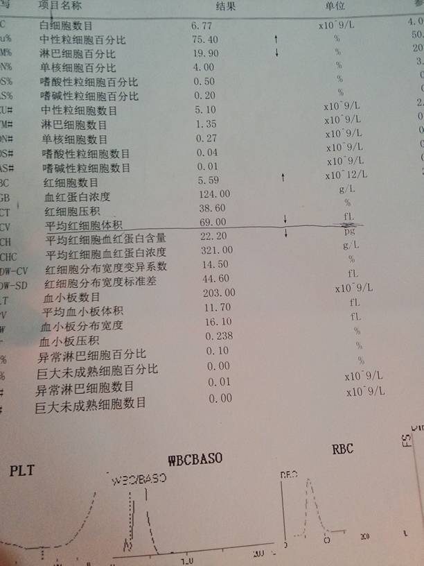 我真的是贫血吗?那个医生帮看看化验单啊! 我真的是贫血吗?那个医生帮看看化验单啊! 点击展开 182*****685_uVHI 2014-12-26 11:20 为您推荐: 其他回答 你好,目前的情况血红蛋白在12.4g,属于正常,建议合理膳食,均衡营养。 五彩缤纷20143 2014-12-26 15:21 我也不会看,帮我看下是不是也是贫血 我的青春我做主_6b9E 2014-12-26 14:32 祝你平安… ジ若相惜ぶ卟弃 2014-12-26 14:26 祝宝妈好孕 135*****703_Qgn7 2014-12-26 13:51 对照后面的正常指标啊 159*****361_dml8 2014-12-26 13:42 加载更多 相关问题 哪位医生帮忙看看宝宝的化验单,是不是贫血啊?有没有事? 那个好心的医生帮我看看这个化验单,真心感谢! 现在不知道预产期谁可以帮忙给我算一下 还有看看胎位什么的怎么样?有点贫血医生开的药不想吃 是用