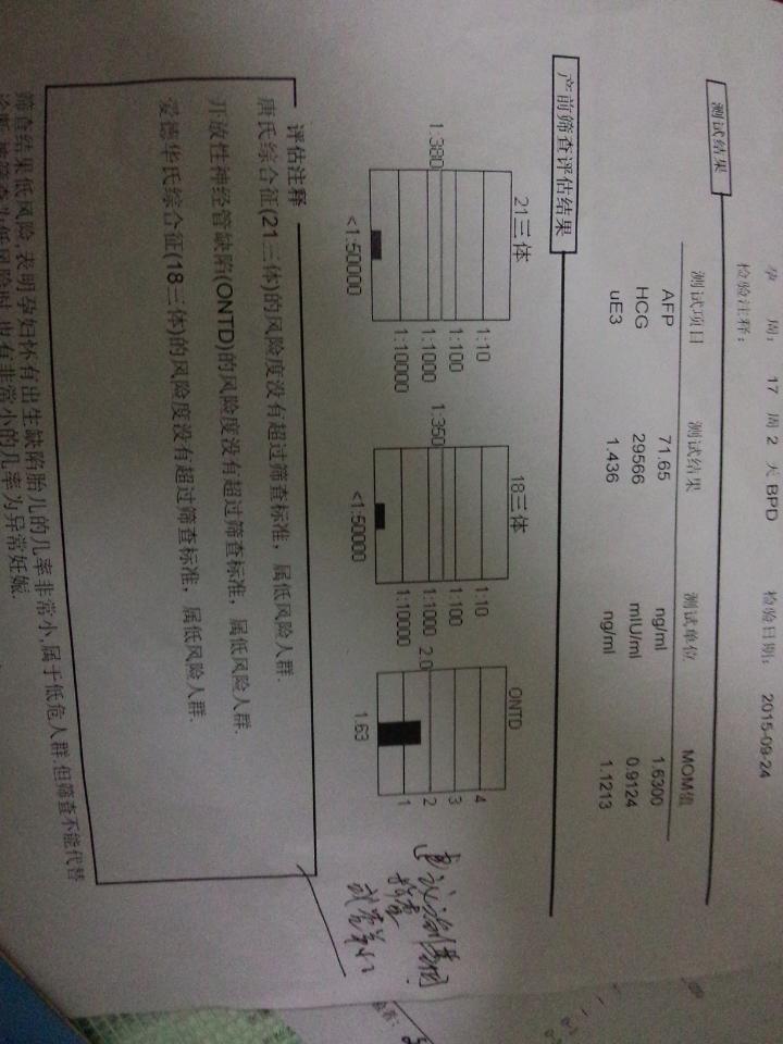 唐氏筛查结果出来了,三项都是低风险,ONTD开放性神经管缺陷值是1.63没超过2.0可是医生说有点