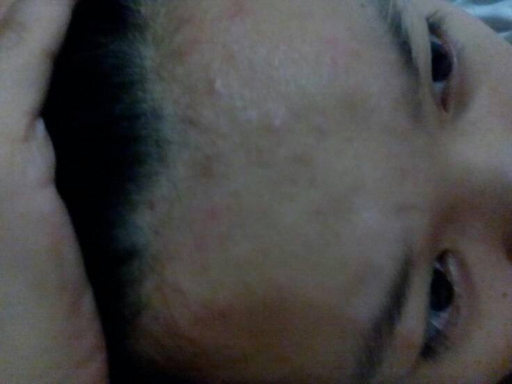 我额头上也长了痘痘,不过没你的多,我是一怀孕就长了,我刚怀孕时也喉咙痛过,用柚子皮和冰磄煮水喝两天就好了