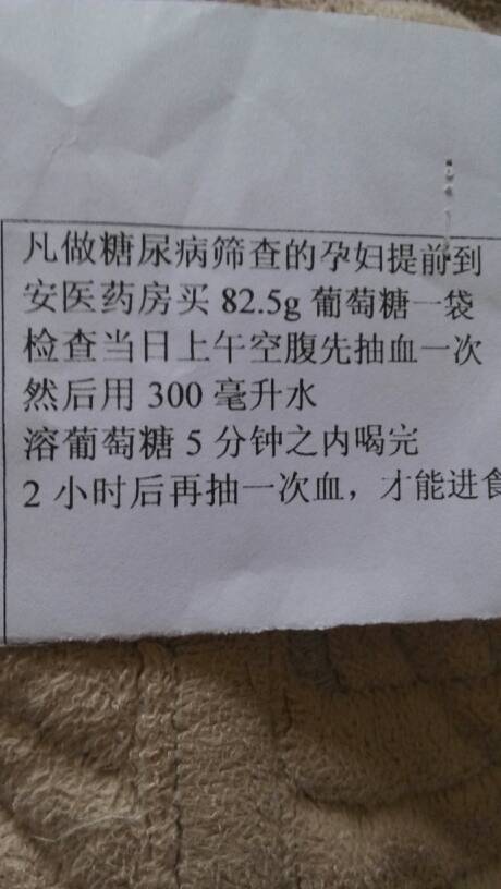 今天做糖筛,是照这个做吗?那葡萄糖和水浓度到底对不对啊? 今天做糖筛,是照这个做吗?那葡萄糖和水浓度到底对不对啊? 点击展开 每个宝宝都是天使 2014-09-20 07:52 为您推荐: 其他回答 是这样的,以前的标准是吃75克,现在的标准是82.5克,一般做三次血糖,喝葡萄糖之前一次,一小时以后,两小时以后分别一次 衷喜明2 2014-09-20 07:54 相关问题 做糖筛空腹5 3,喝下50ML的葡萄糖 请问有经验的宝妈,这个月27号我要做糖筛了,请问我如果六点钟起床,六点半出家门,然后我在路上提前一个小时把葡萄糖水喝了,到医院再抽血,这样可以吗?住的地方离医院 你好,大夫,儿子昨天下午四点半刚出生,没有吃奶,就喝了一些水和葡萄糖,一直到今天上午十点都没吃东西