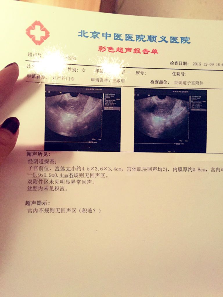 ‘’0.9*0.9*0.4‘’不规则无回声可能是宫腔积液或是其以筛告它可能,建议你结安布合验血检查确定是悼金否怀孕。