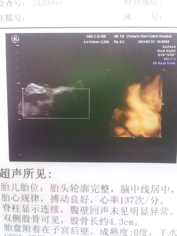 这上写的是什么意思阿?帮我看看男孩女孩,想提前知道,谢谢了 这上写的是什么意思阿?帮我看看男孩女孩,想提前知道,谢谢了 点击展开 勇闯天涯 2014-07-24 10:05 为您推荐: 其他回答 从心跳看的话,女孩的概率大一点呦,但是也不一定 ╭ァForeverゞ吥离 2014-07-24 10:12 你所提示的检查结果是看不出男女的,目前建成是没有异常的,怀孕后要保持心情舒畅通,适当活动,注意休息,饮食清淡不过咸,在妊娠中期后开始补钙,要定期产检,注意休息。 hbwxsxl 2014-07-24 10:10 你是做的普通彩超吗 开心果宝❤️ 2014-07-24 10:08 相关问题 请问医师帮我看看这彩超单上说的是什么意思?最好告诉我是男孩女孩?想提前知道一下 我家宝宝的预产期是2013年2月15号,会不会提前阿?宝宝姓赵,帮忙取个名字吧?男孩女孩都需要,谢谢了 我现在是怀孕八周,做的b超数据是2 6*3 9*1 6谁能帮我看看是男孩女孩?