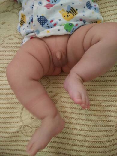 宝宝头枕着大腿,用手提着他的腿啊,很好洗
