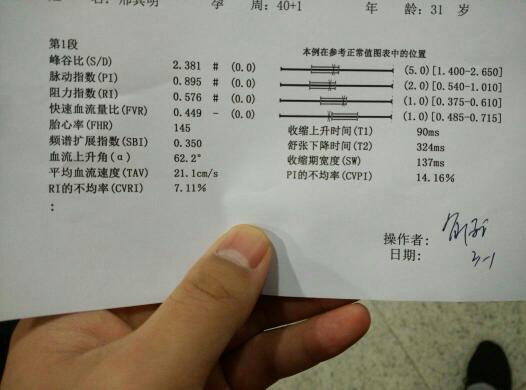 胎儿脐血流检查报告单 点击展开 匿名用户 2019-07-04 06:21 满意回答 你好,目前怀孕40+1根据检查结果来看属于正常的,如尺惠果各方面检查正常,想顺产可以再等等卫剪。纺佳厘 cn#aVfLaQLVpf 2020-02-26 21:47 宝宝知道提示您:回答为网友贡献,仅供参考。 相关问题 胎儿脐血流检测是什么? 我怀孕31周+2 胎儿双顶径7 6cm股骨长6 3cm胎儿脐血流2 8正常吗 谢谢 羊水;最大深度4 16CM 这是什么意思 胎儿脐血流指数;S/D=3 33;PI=1 14;RI=