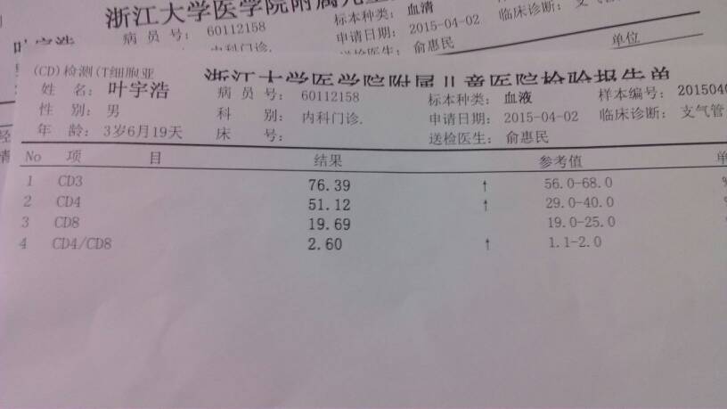 宝宝老是感冒生病,今天去医院做了些检查,其中有一个化验单不太清楚,请各位医生看看,医院医生解释说 宝宝老是感冒生病,今天去医院做了些检查,其中有一个化验单不太清楚,请各位医生看看,医院医生解释说,我们宝宝免疫系统太强,导致伤风感冒反而好的慢,这个解释合理么? 点击展开 匿名用户 2015-04-09 21:11 推荐回答 这个有一定的合理性的 免疫力太强金抹了 一般都很少得裁战生病 但是抗最得了病好起来的很慢 望采纳 匿名用户 2015-04-09 21:15 宝宝知道提示您:回答为网友贡献,仅供参考。 为您推荐: 其他回答 母鸡 匿名用户 2015-04-09 21:43 相关问题 感冒了,头有一点晕,很累不知道要吃什么比较快好,我不想吃药,请医生给我解释解释啊? 宝宝感冒咳嗽还有点抽搐是怎么回事?请那位医生帮忙解释一下 请问我感冒发烧了,去医院医生给我开的中成药,我吃了会对宝宝有影响吗?