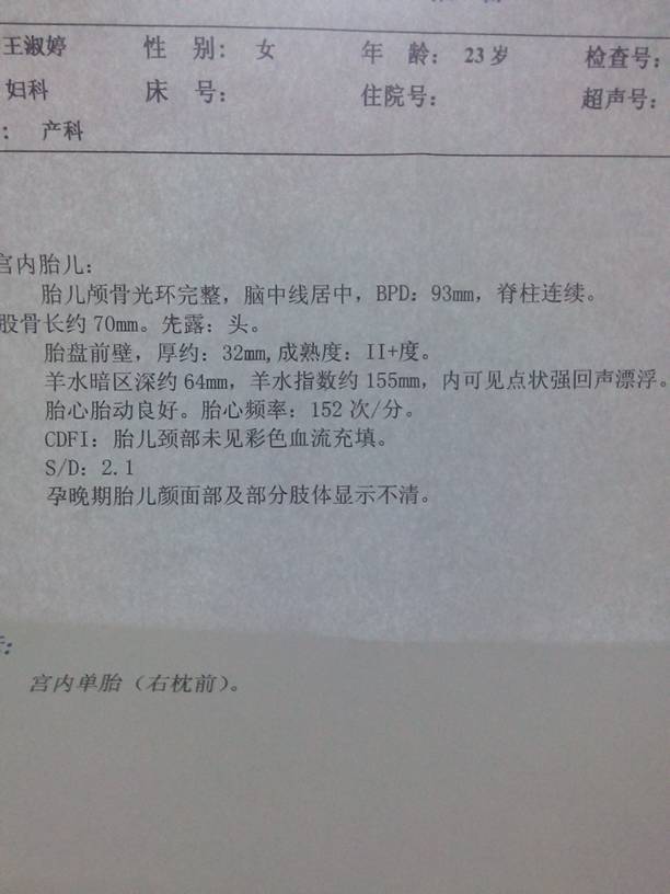 这是37周多一点了,医生说羊水混浊,一个星期后再去检查,可能会提前生产,看这检查单 我能顺产不?