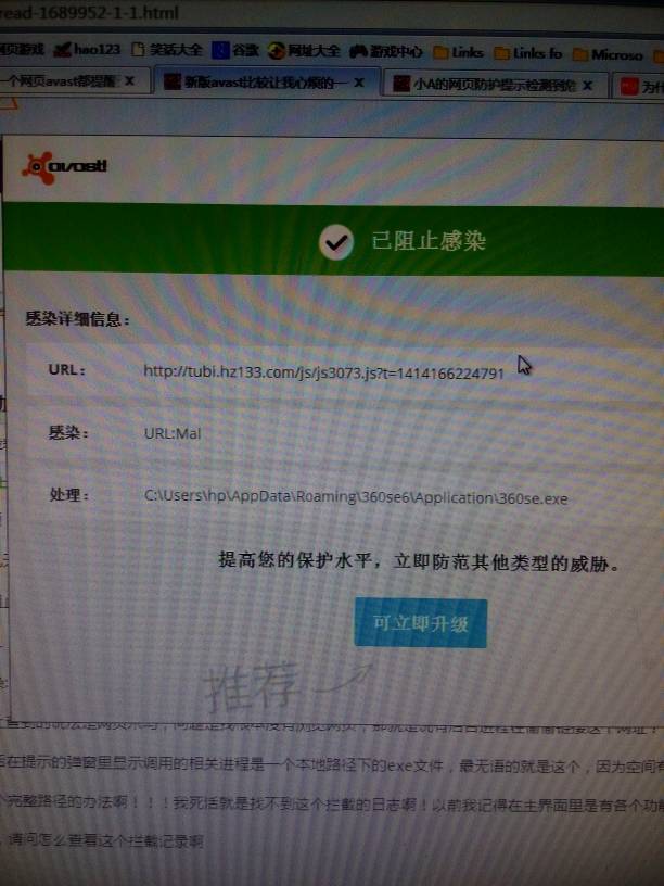 各路大侠,有用avast 的吗?电脑被小孩玩游戏下了好多乱七八糟的软件等,删了姐姐一晚上,下了a 各路大侠,有用avast 的吗? 电脑被小孩玩游戏下了好多乱七八糟的软件等,删了姐姐一晚上,下了avast 删了14个病毒,但是现在我每打开一个网页它都提示已检测到危害! 点击展开 匿名用户 2014-10-24 23:59 满意回答 上百度首页看看会不会提示,看样子像是DNS劫持 匿名用户 2014-10-25 00:01 宝宝知道提示您:回答为网友贡献,仅供参考。 相关问题 家里经常来小孩,而且把每次用我的电脑玩游戏,都下载好多乱七八糟的游戏,而且还下到C盘,又是超大 母婴保健手册怎么填啊,我做了检查可是单子都乱七八糟的放,那时候医生电脑坏了,有些就没有填上去,现 各位大侠帮帮忙,呜呜 我姐姐用我的电脑去看了那些不适合我们小孩子看的电影,咳咳,大家懂得