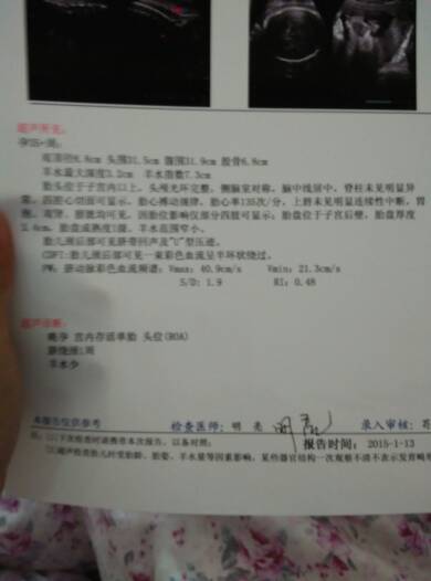 35周加2天双顶径88mm 头围31.5cm腹围31.9cm羊水最大深度3.2cm羊水指数7.3c