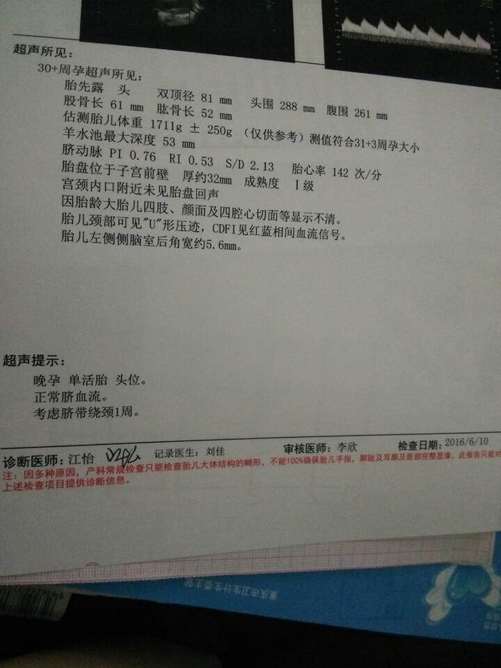 孕30+5羊水池最大深度53mm正常吗?胎儿颈不可见"U"形压迹是什么意思啊,知道的求解,非常感谢 孕30+5羊水池最大深度53mm正常吗?胎儿颈不可见"U"形压迹是什么意思啊,知道的求解,非常感谢 点击展开 t307377736 2016-06-10 18:13 为您推荐: 其他回答 祝健康!! 小小高^ω^ 2016-06-10 18:43 不知道哦哦! 馨❤️馨2 2016-06-10 18:38 都有,不知道 宝贝Miya 2016-06-10 18:34 问问医生啊 曦曦曦天才 2016-06-10 18:33 问问医生, 13533569028 2016-06-10 18:30 加载更多 相关问题 胎儿27周右下肢显示不清,羊水池深度3 55CM,其它都正常范围,不会有问题吧 根据B超单看胎儿大小明天的预产期,今天做的B超,双顶径95mm,股股长74mm 羊水池最大深度54 b超显示孕33周,最大洋水池深度56mm,正常吗