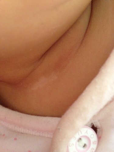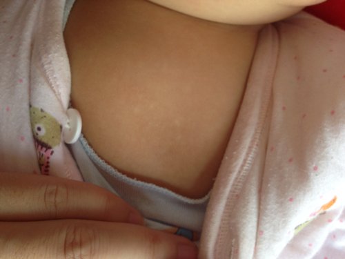 3个月宝宝脖子褶皱处和胸前长了白斑是怎么回事?不会是白癜风吧…脖子下为长条状的,胸前是零星点状的