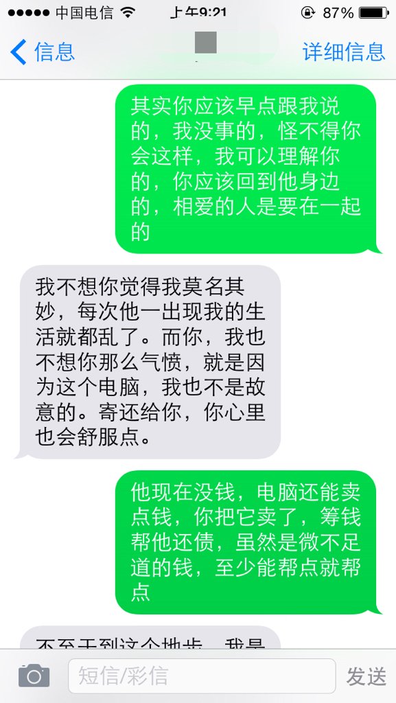 她一直强调你要是想要电脑的话,她就给你,其实我感觉她说的那些话就是不想给你电脑,