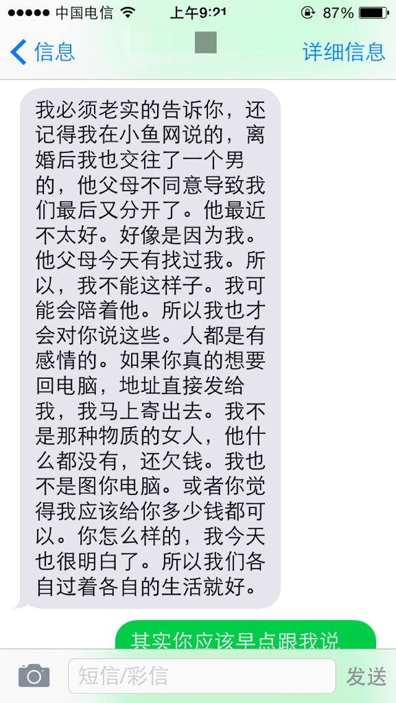 爱上离婚有孩子的女人,她也表明对我有好感,最后我犯了一个错误,她离开了我,最后离开说说了一些话,说