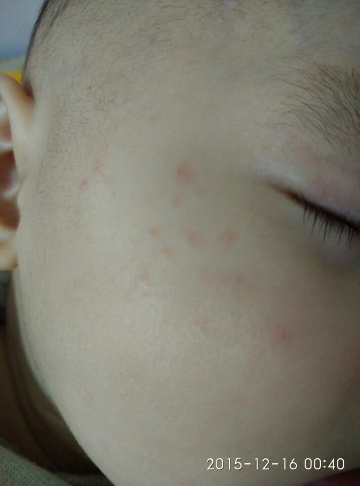 请大家帮忙看看,我宝宝脸上是怎么了?不知道是用了强生婴儿专用的给宝宝擦脸过敏,还是对衣服上的毛毛过