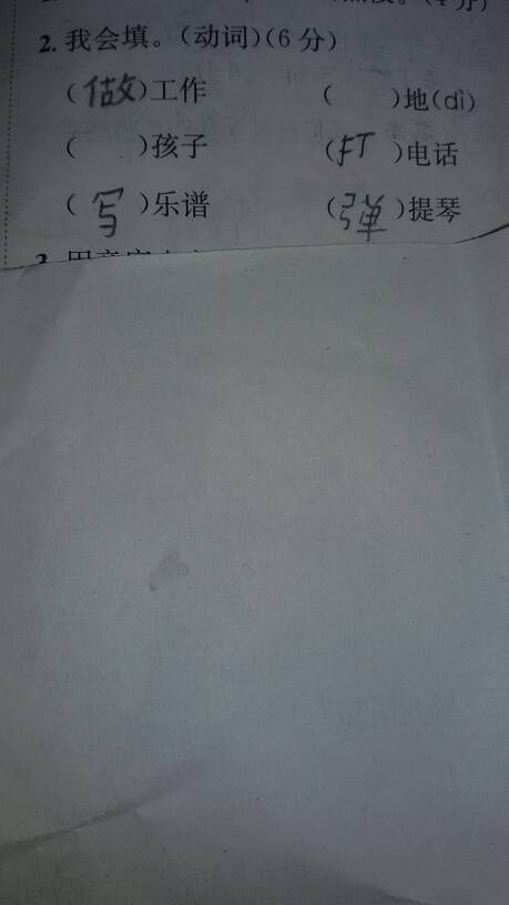 我会填动词:()工作()地(四声)()孩子( 我会填动词:( )工作( )地(四声)( )孩子 ( )电话( )乐谱 ( )提琴 点击展开 匿名用户 2015-04-20 17:45 推荐回答 找工作,耕地, 哄孩子,接电话 看乐谱,拉提琴 匿名用户 2015-04-20 17:49 宝宝知道提示您:回答为网友贡献,仅供参考。 为您推荐: 其他回答 (找)工作,(种)地,(哄)孩子,(打)电话,(写)乐谱,(拉)提琴。 匿名用户 2015-04-20 17:53 相关问题 我家孩子不怎么笑,也笑不出声,和我家差不多天数的孩子早就会了,四个半月孩子还不会笑出声正常吗? 各位准妈妈,都来讨论下,孩子出生后你们会选择在家带孩子,还是出去工作? 生孩子有老公不回去的吗?说工作忙,,这样可以有吗
