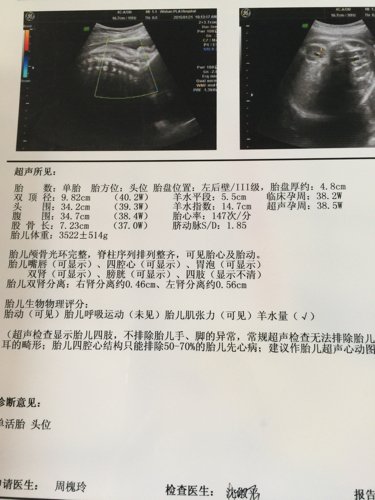 怀孕38周加,胎盘3级,什么时候会生 点击展开 匿名用户 2015-01-22 17:52 为您推荐: 其他回答 你好,你的情况胎盘已经三级了,一般会在两周左右宝宝出生,可以观察一下,如果出现密集的宫缩阵痛,或伴随阴道见红现象,考虑多是临产症状,需要尽快到医院就诊待产的较好。 上白城 2015-01-22 19:55 相关问题 请问:怀孕38周加3天,胎盘3级,宝宝双顶径约94mm,单侧股骨长径73mm 我现在孕38周加3天,胎盘成熟度2级,双顶径90mm,胸径85mm,腹径85mm,股骨长67mm 这好,我末次月经3月25,昨天b超38周加了 胎盘为3级,胎心监护说宫缩平凡,十分钟一次