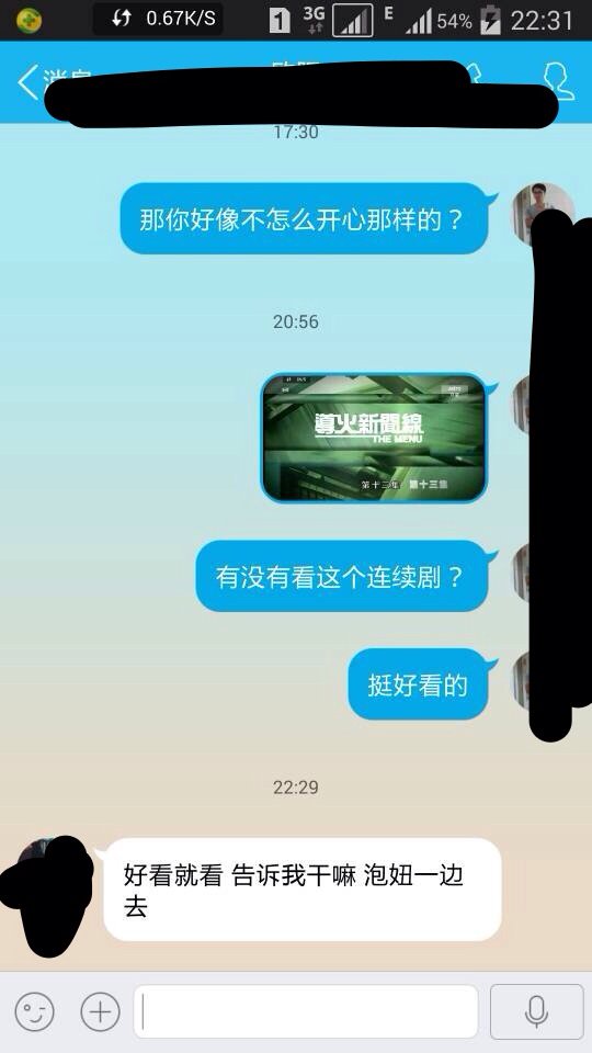 和我聊天是相亲认识的女孩的,我就这样和她聊,她怎么回复我泡妞一边去是什么回事?? 点击展开 匿名用户 2015-06-01 23:07 推荐回答 看来是对你没感满然坊觉,也可能是你之前说卜径话有些轻浮了。没前后文只看这段,女孩涵竖趋养不够。 匿名用户 2015-06-01 23:10 宝宝知道提示您:回答为网友贡献,仅供参考。 为您推荐: 其他回答 非常反感你ne 匿名用户 2015-06-01 23:38 不喜欢你 匿名用户 2015-06-01 23:24 没希望就是了 匿名用户 2015-06-01 23:23 她只是忘了你是她相亲对象了 匿名用户 2015-06-01 23:15 加载更多 相关问题 相亲认识的女孩前几天聊的还可以但是五月二十号开始突然不回复了或者偶尔回复一两句,,我应该怎么样跟她 刚认识一个女孩,如何约她出来吃饭?然后聊些什么才好呢?求大师指点 本人泡妞很烂55 我和他(现在的男朋友)在相亲上认识的,(我是一个在感情上受过伤的女孩,生过一个小孩,不在相信爱情了
