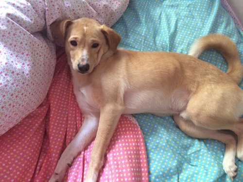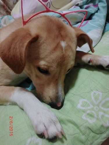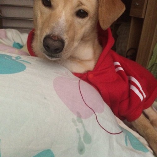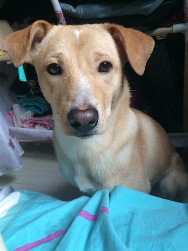 看照片很难确定是什么品种杂交的。不过,什么品种的狗狗都很可爱,不必执着狗种,希望能好好照顾。