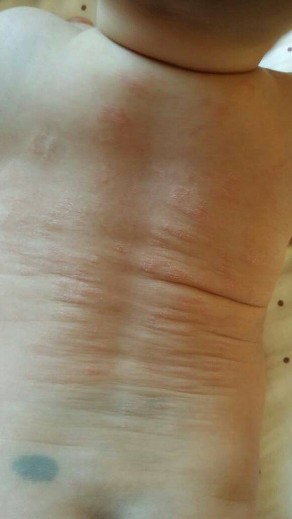 大家帮我看看这是什么阿,擦什么管用阿?宝宝三个月时候身上起的是红点,然后一点点变成这样了,去医院医