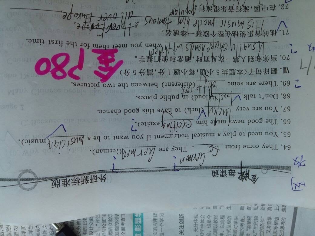 64.Germany德国,Germans德国人(复数) 66是指消息令人激动,它本身属性要用ing 69两幅画之间有不同之处