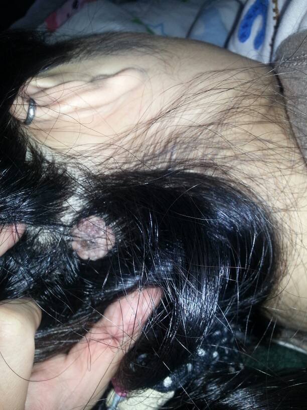 我以前也有,也在耳朵后面的头发里,去医院医生用激光切了,打麻药的不疼,我的切完在原处还长出新发,建议你也去医院看看