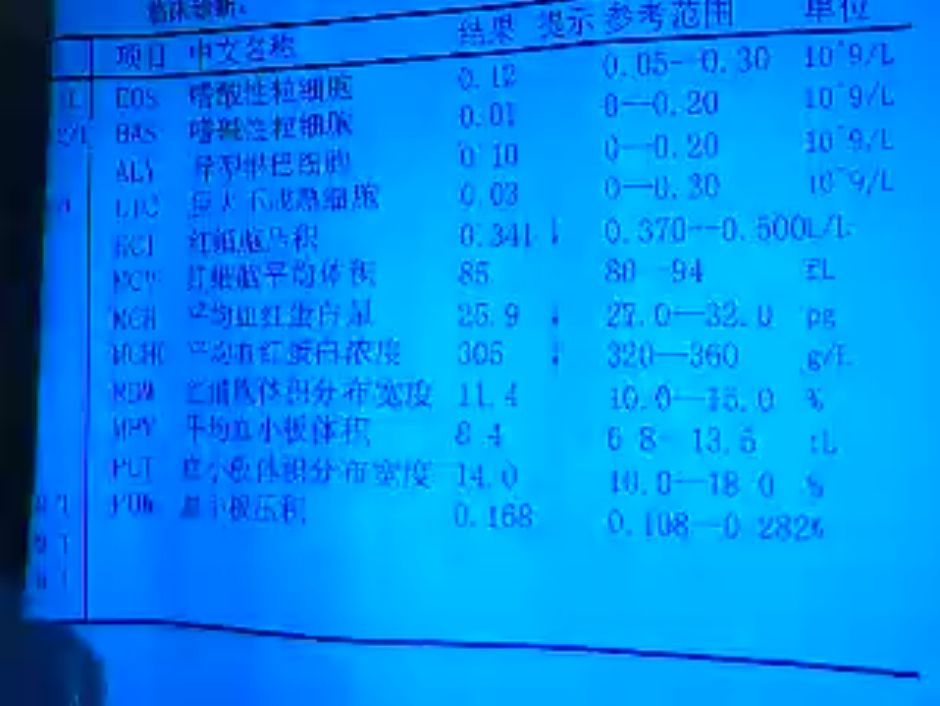 RCV0.341,MCV85,MCH25.9,MCHC305,这一化验结果可以判定为地中海贫血吗?这是一怀孕八个月的孕妇,31岁? 点击展开 匿名用户 2013-07-20 00:55 为您推荐: 其他回答 不可以,因为地中海贫血与缺铁性贫血都会出现这些指标偏低,所以如果确诊的话必须作进一步检查。由于患者是孕妇所以也可以出现由于血液稀释导致的妊娠期贫血的。 法沛岚_TtX3 2013-07-20 16:16 相关问题 我怀孕6周了,但现在检查出地中海贫血(HbA2)标准2 5%-3 5%,我的是偏低2 3%,这会遗 怀孕几个月做地中海贫血检查?怀孕几个月做唐氏筛查?几个月抽羊水,几个月抽脐带血? 我没有检查过什么地中海贫血,我本身就有贫血症状,蹲久了站起来会头晕眼花,现在怀孕五个月了,会患有地