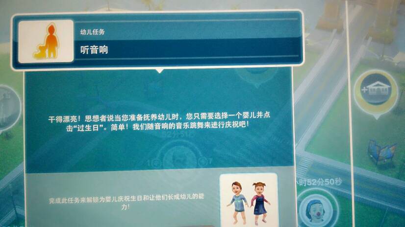ipad模拟人生免费版,幼儿任务,听音响怎么完成?需要先把婴儿变幼儿吗?选择音响的哪一项啊? 点击展开 匿名用户 2015-03-26 08:50 满意回答 先要成长。然后点听音菠急乐。不过现在模拟人生后面的航侨时间会乱掉告立朗。记得留住宝石。 匿名用户 2017-12-29 08:36 宝宝知道提示您:回答为网友贡献,仅供参考。 相关问题 ipad模拟人生添加幼儿!!添加的是幼儿!不是婴儿!怎么添加 ipad版模拟人生男女双方伴侣值都满了,且迁入到了一家为什么还没有求婚的选项? ipad模拟人生在做完结婚生小孩的任务以后,为什么另外一对不能成为配偶结婚了??戒指都浪费了好几个