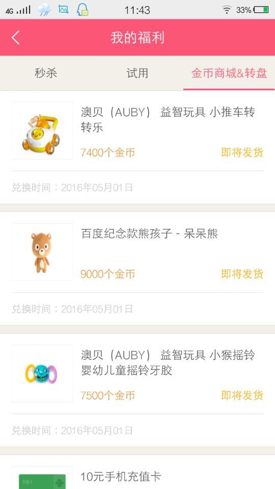 用金币给宝宝换的玩具 用金币给宝宝换的玩具 点击展开 wywh 2016-05-01 11:48 为您推荐: 其他回答 赞👍 ,,, xs2312040722 2016-05-01 13:02 厉害……。 歆彤妈妈 2016-05-01 12:58 百度一下, 能猫。。。 2016-05-01 12:40 宝妈金币好多,可以给我点么 伊诺宝贝^ω^ 2016-05-01 12:39 宝妈怎麽做的啊,等级好高 张傲芷诺 2016-05-01 12:28 加载更多 相关问题 很想给宝宝换个玩具,可是我的金币才这么一点 好开心,瘦了20斤了,加油!恭喜哦,宝妈都换了什么玩具啊?我才300金币啊? 宝宝什么时候知道伸手拿玩具玩?