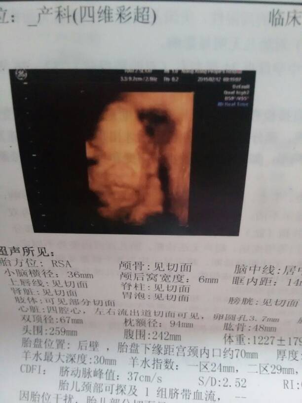 你现在的彩超显示胎儿的数值符合孕六个月的月份,胎儿的部位显示不具体。建议你定期检查胎儿健康状况即可。