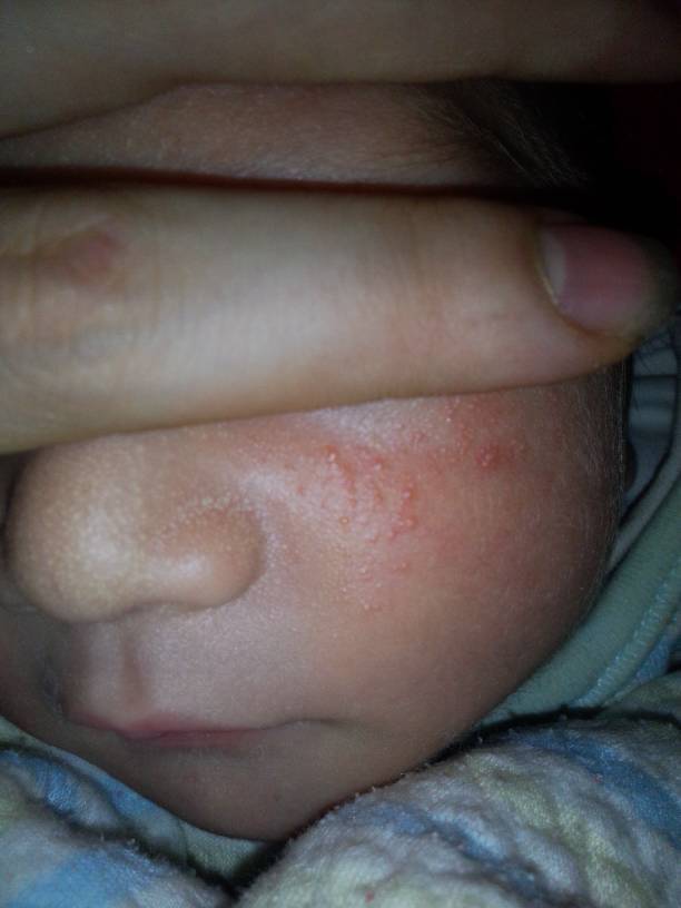 你好这个情况要考虑小儿湿疹,外用炉甘石洗剂,有水疱和渗液时候用3%硼酸溶液或野菊花煎剂湿敷.一段时间不好时可使用焦油类药物如黑豆熘油或煤焦油软膏.