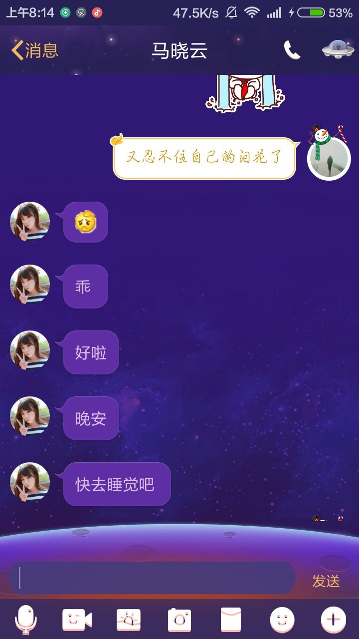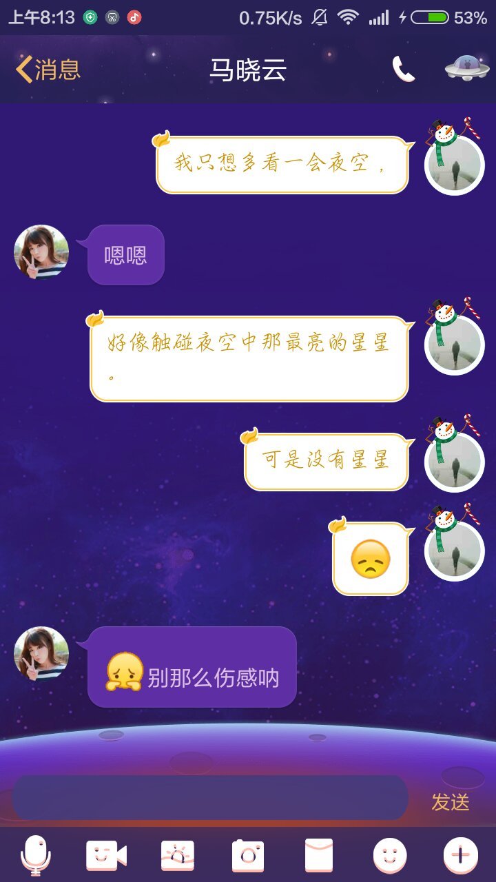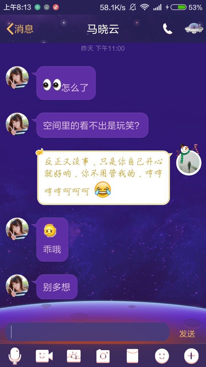 圣诞节我送她暖宝宝,她很开心,然而晚上我看见了她在空间发这个,我特么是被当备胎了?她还来找我说这些