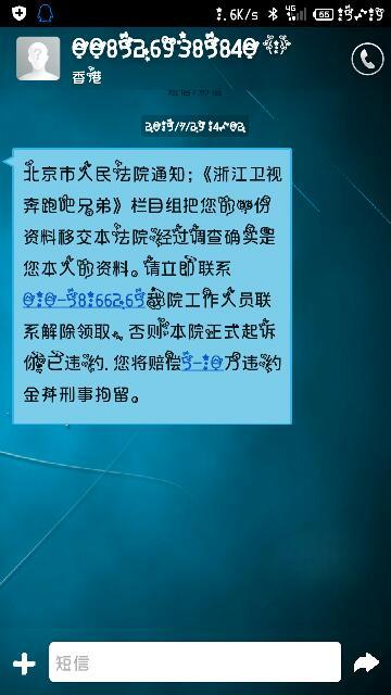 昨天下午qq发来一条短信说我中奖了,于是我好奇就打开了看里面有模有样的,结果我有点信了,于是就填写 昨天下午qq发来一条短信说我中奖了,于是我好奇就打开了看里面有模有样的,结果我有点信了,于是就填写了,地址和身份证结果后面又说要55000元的保险金,我不相信但他们今天发来一条短信说我北京人民法院起诉了,请问这是真的吗??? 点击展开 匿名用户 2015-07-29 15:34 满意回答 诈骗,别信拉黑。 匿名用户 2015-07-29 15:35 宝宝知道提示您:回答为网友贡献,仅供参考。 为您推荐: 其他回答 一看就是假的 匿名用户 2015-07-29 15:51 假的,我接到过,可以给他发短信轰炸试试 匿名用户 2015-07-29 15:39 没事,不要理他 匿名用户 2015-07-29 15:39 相关问题 我接到一条短信说是湖南台的,说我中奖了,我好奇就填写了真实资料,后来发现不对,因为他们要我交钱 如果感觉不到男友在乎自己怎么办?偷看他的微信,QQ,通话记录,短信…男孩知道后会有什么感觉 一个男孩,QQ里有好友,微信里有好友,没有一点聊天记录,没有短信记录,没有电话记录