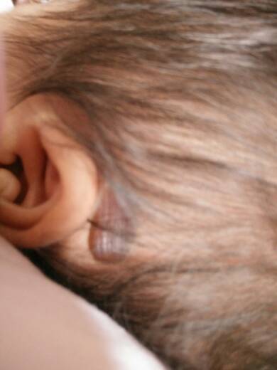 宝宝出生胎带耳朵旁长有血泡,一个月了,但宝宝没任何不良反应,可是做妈妈的一直很担心,有又怕蹭破了