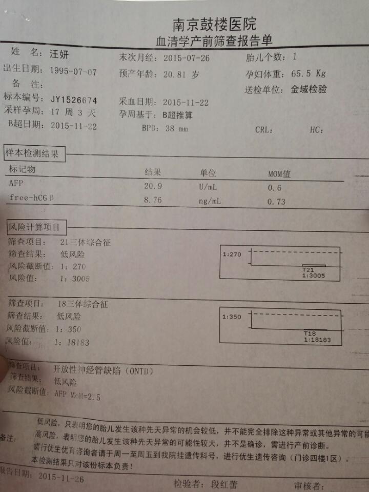 听有的宝妈说可以从唐筛单子中看出男女,真的是嘛?大家帮忙看看 听有的宝妈说可以从唐筛单子中看出男女,真的是嘛? 大家帮忙看看 点击展开 王泽锐、 2015-12-09 16:57 为您推荐: 其他回答 不准吧、c 慬源妈妈 2015-12-09 17:01 不准确,还是找人,问医生 じ☆ve追寻 2015-12-09 17:01 不会吧,应该是不准的 小爱侠 2015-12-09 17:01 我觉得不可能! 180*****577_iNS4 2015-12-09 17:01 准确率不高 媚•﹏• 2015-12-09 17:01 加载更多 相关问题 听说从唐筛单子上能看出男女来 大家帮忙给看一下 谢谢了 宝妈们,帮忙看看我的唐筛结果21三体 1:174 18三体1:17355宝宝妈们快帮我 急求大家帮忙看下今天出来的唐筛单子,医生讲要做无创DNA检测,评估讲属于低风险,我这比值严重嘛?很担心害怕