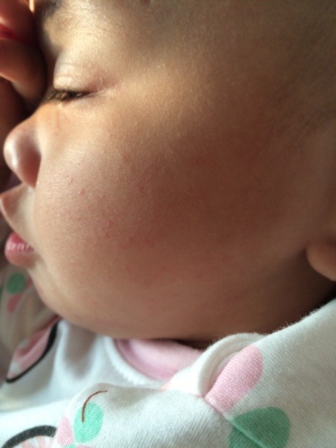 女儿的脸上从昨天开始出现了这些红点,会不会是因为我前天喂了芒果的原因,引起过敏了!宝宝才11个多月