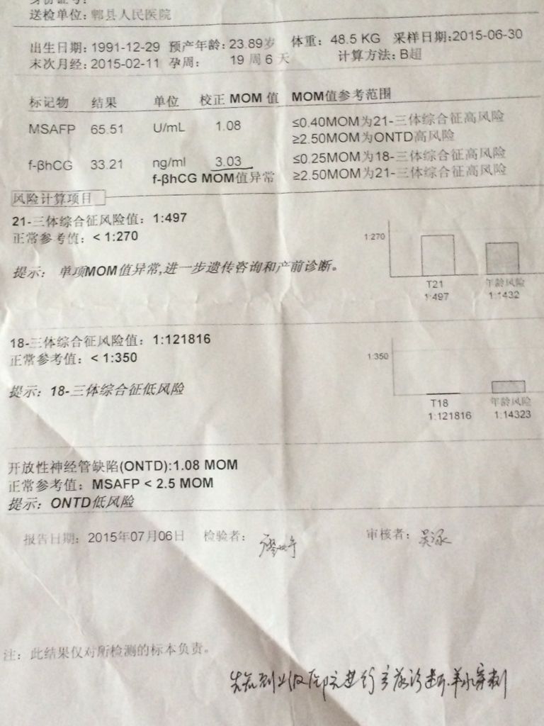 关于唐氏筛查的结果 医生叫我们去做羊水穿刺 但是有风险 我们现在担心的不要不要的…希望大