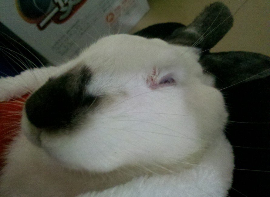 我的兔子八个月大了,一直很健康 最近发现它的眼角的毛毛总是湿湿的,摸上去年年的,干了之后毛都硬硬的