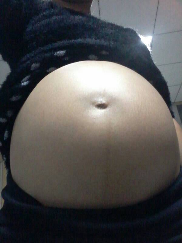 比我那会大,我六个月根本看不出来!孩子正常其它不要紧,而且还没有妊娠纹
