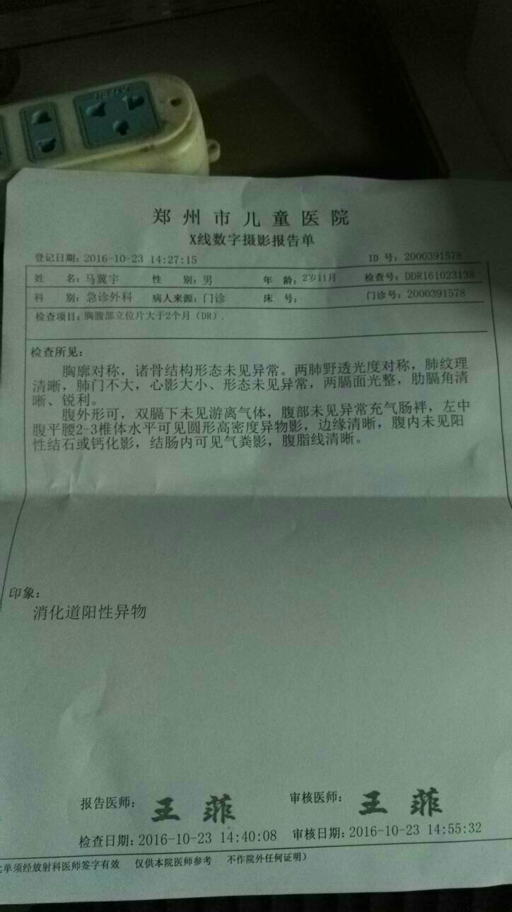 今天三岁宝宝不小心吃了一毛钱硬币,拍了片子,没看懂,不知道硬币在宝宝肚子里危险吗?求解答 点击展开 小天使tianshi 2016-10-23 20:59 满意回答 确实有有硬币,这先观察看看吧,应该是可以排泄掉的 cn#BVkufBGkkk 2016-10-23 21:02 宝宝知道提示您:回答为网友贡献,仅供参考。 相关问题 宝贝不小心吃了一个一毛钱硬币怎么办 宝宝左乳房里有个类似一毛钱硬币的疙瘩怎么回事,右边没有 宝妈们 我的孩子胳膊上找了一个和一毛钱硬币一样的 医生说是血管瘤怎么办呀