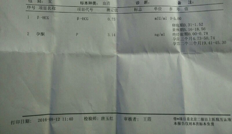 今天上午做的HCG检测,化验单自己看不懂,想情专业人士帮忙看看 点击展开 匿名用户 2016-08-12 19:32 满意回答 从这个数值来看,是没有怀孕的。月经有推迟吗? С¿ѧ 2016-08-12 19:43 宝宝知道提示您:回答为网友贡献,仅供参考。 相关问题 请专业人士帮我看下,我做的是血HCG检查有没有怀孕,下面这张化验单显示有没有怀孕啊 请哪位专业人士帮忙看看内分泌化验单:排卵期出血,量虽然不多但要持续到来月经 请帮忙看看血细胞检测化验单,谢谢 小男孩,5岁