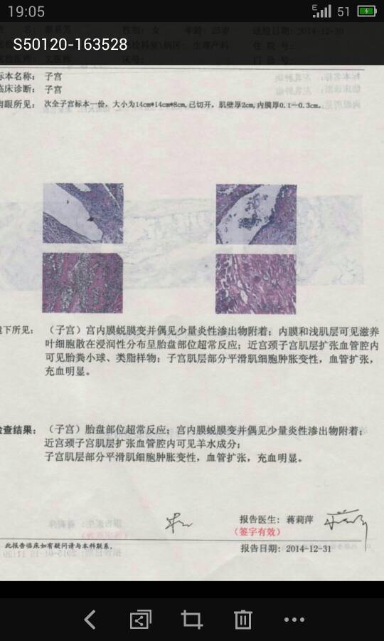 剖腹产大出血,为了保命切除了一半子宫 下面是子宫样本拿去化验的结果,请懂的人帮帮忙解释解释 谢谢 剖腹产大出血,为了保命切除了一半子宫。下面是子宫样本拿去化验的结果,请懂的人帮帮忙解释解释。谢谢 点击展开 捡垃圾的小屁孩 2015-02-04 23:34 为您推荐: 其他回答 祝你早日康复 、女宝贝 2015-02-05 11:17 还可以在要宝宝吗? 、女宝贝 2015-02-05 00:42 剩一半也可以再要孩子的 一直随心 2015-02-05 00:10 问一下医生怎么说的 沫沫_lG5D 2015-02-04 23:42 问问医生吧 ^公主宝贝^ 2015-02-04 23:42 加载更多 相关问题 剖腹产大出血吧子宫切除了 我不懂什么是双子宫,请专家解释一下,谢谢!