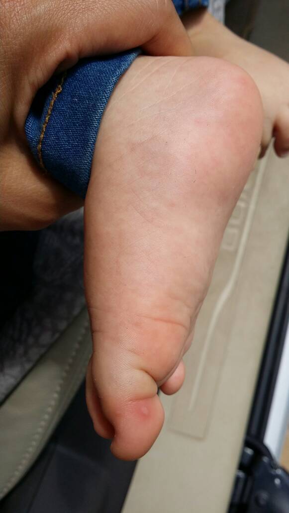 前天开始发现宝宝手上有一个红色的疹子,中间有点白,脚上有类似两三个,舌根部有几个红包,还有七八个红