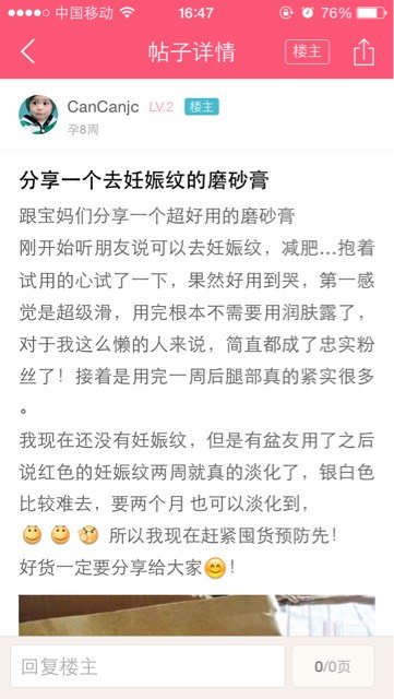 [分享]给宝妈们一种国外超火的磨砂膏,去妊娠纹的哟~还可以减肥~去水肿~ 【分享】给宝妈们一种国外超火的磨砂膏,去妊娠纹的哟~还可以减肥~去水肿~ 点击展开 CanCanjc 2015-05-16 17:13 为您推荐: 其他回答 祝宝妈好孕 1325478555 2015-05-16 22:04 多少钱啊! 宝贝,我爱你!n 2015-05-16 18:42 具体名字叫什么? 寒冰5 2015-05-16 17:59 什么名字的磨砂膏,多少钱 萌萌滴 2015-05-16 17:57 哪有卖的? 如意妈妈, 2015-05-16 17:37 加载更多 相关问题 帕玛氏妊娠纹按摩乳、霜、膏区别?减肥时使用顺序? 宝妈们有没有好的减肥计划和去除身上妊娠纹的好办法? 有专门消除妊娠纹的减肥产品吗