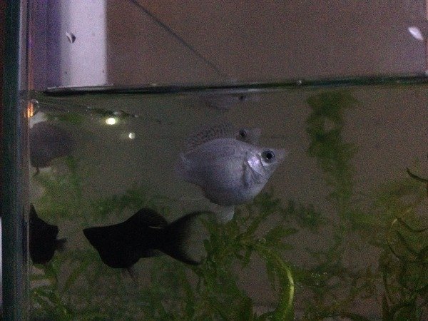 看看它是不是比别的鱼吃的多,你最好买个隔离箱 ,买障碍物那些东西 不好,要捞小鱼的时候很难捞到的