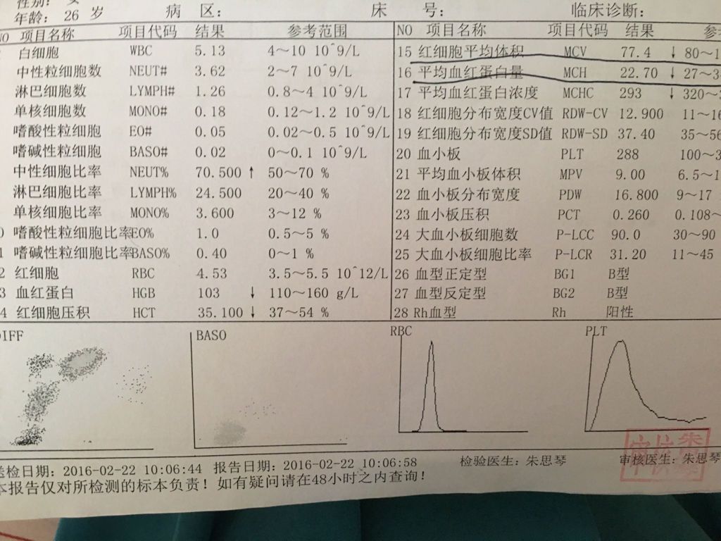 怀孕验血,血红蛋白、红细胞积压、红细胞平均体积、平均血红蛋白量、平均血红蛋白浓度都偏低是怎么回事 怀孕验血,血红蛋白、红细胞积压、红细胞平均体积、平均血红蛋白量、平均血红蛋白浓度都偏低是怎么回事怀孕验血,血红蛋白、红细胞积压、红细胞平均体积、平均血红蛋白量、平均血红蛋白浓度都偏低是怎么回事?求大神指点,在线等! 点击展开 ╰' 西瓜 2016-06-16 09:14 为您推荐: 其他回答 怀孕还要做这个检查吗?我都不知道的! 匿名用户 2016-06-16 17:59 相关问题 宝宝十五个月血红蛋白98,红细胞积压30,红细胞平均体积,7 2,平均血红蛋白23 6是正常吗? 验血报告显示血红蛋白86,平均红细胞体积69 3平均血红蛋白量21 8,平均血红蛋白浓度314,请问这属于地贫吗? 我家宝宝最近感冒了,验血验出血红蛋白、红细胞压积、红细胞平均体积、平均血红蛋白量等指标有点低,是不
