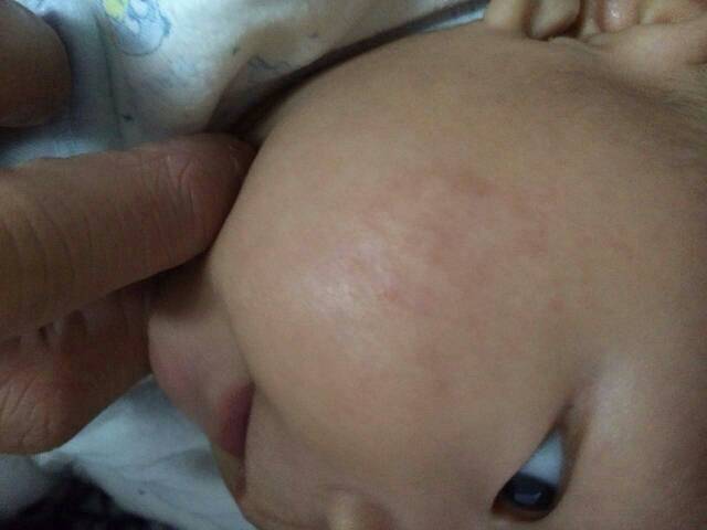 有没有医生帮忙看下,宝宝脸上是湿疹还是癣 有一次是被连体衣服摩擦了,发现脸上有一块这样子了,都十几