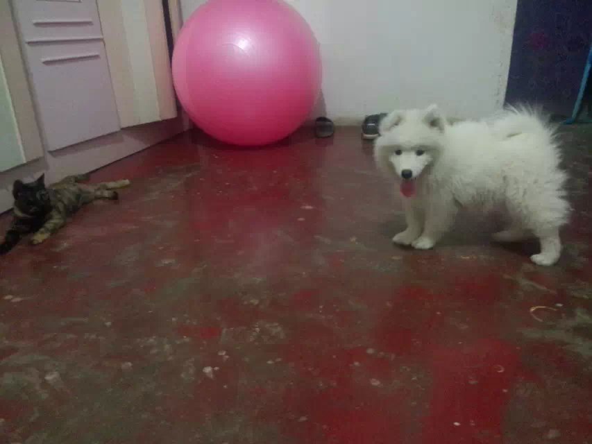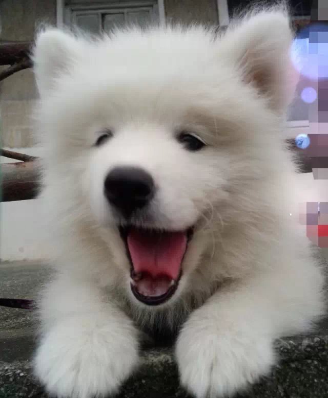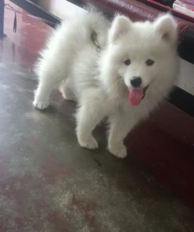 是萨摩耶,人们通常会把小萨和银狐弄混,现在给楼主各方面对比,楼主可以了解下哦。 嘴:萨摩耶和银狐的最大区别就是嘴。萨摩耶的嘴相对银狐较宽,较短,嘴两侧的肉相对银狐来说更加厚实。 眼:萨摩耶有着典型的杏仁眼,银狐的眼睛相对较小,较圆。 脸:萨摩耶的脸型与银狐也有区别。萨摩耶的额段较为深刻明显,像罗汉鱼一样(大脑门)说得通俗一点就是脸与鼻梁骨所呈的角度较大。而银狐相对来说额段不明显,就是所呈角度小的多。 脸颊:萨摩耶的两侧腮毛比银狐的丰满的多。 耳:萨摩耶与银狐的耳朵也掏刺破是有区别的。萨莫的耳朵相对来说更加厚实,银狐则显单薄。 毛质:萨摩耶与银狐的毛质有很大区别。萨莫的毛质相对银狐来说更加松软,毛量也丰满的多。而银狐的毛质相对来说更加像市面上不纯的博美,感觉相对来说硬一点,呈打缕儿状。用手摸上去没有像萨摩那样柔软滑顺德感觉。 毛色:相对来说银狐的毛色更加趋于雪白,仿佛是漂染过的,反光的亮度也大于萨莫。而萨摩耶的毛色相对来说趋于乳白,像棉花的感觉,反光亮度也没有那么高。总体感觉是毛茸茸的。 爪子:萨摩耶的爪子的形状类似于哈士齐,而旧愚银狐的爪子形状类似于博美。 表情:银狐的表情没有特点。萨摩耶的表情和脸部越为甜美越好。 性稼殖格:银狐生性胆小,爱叫,相对大多数容易发脾气。而萨摩耶则愿意与人玩耍,更加聪明,好动,但是也很淘气。
