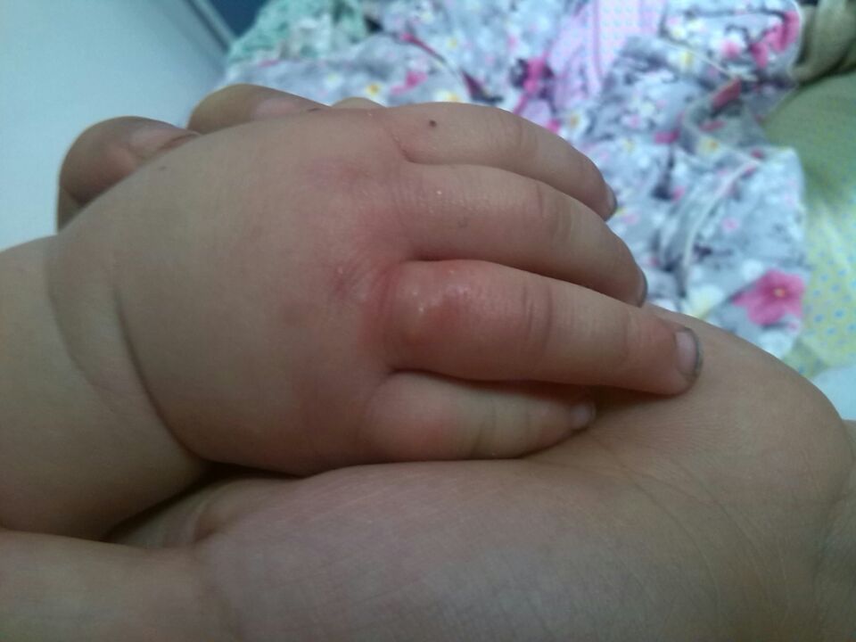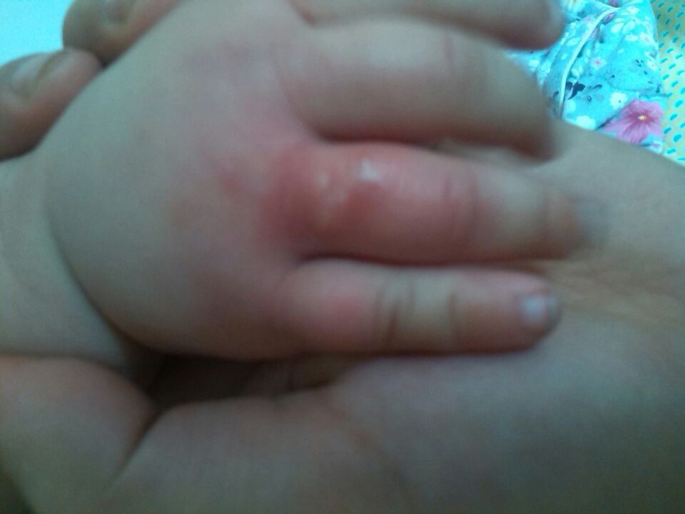一岁半宝宝不知道被什么咬了 手背肿了 有小水泡 点击展开 匿名用户 2014-03-19 14:14 为您推荐: 其他回答 病情分析: 这个是疱疹,是病毒感染,是传染来的。 指导意见: 建议局部涂点抗病毒药膏先观察,建议使用阿昔若韦药膏。 匿名用户 2014-03-19 14:55 相关问题 宝宝手背肿,上面还有一个小水泡 我宝宝低烧两天了37 8-38左右,后来发现手背有三颗小水泡,就抱医院抽血化验昨天结果出来不是手 宝宝十个月,昨天晚上突然眼睛起眼屎,眼睛肿,里面还起水泡,请问是怎么回事?