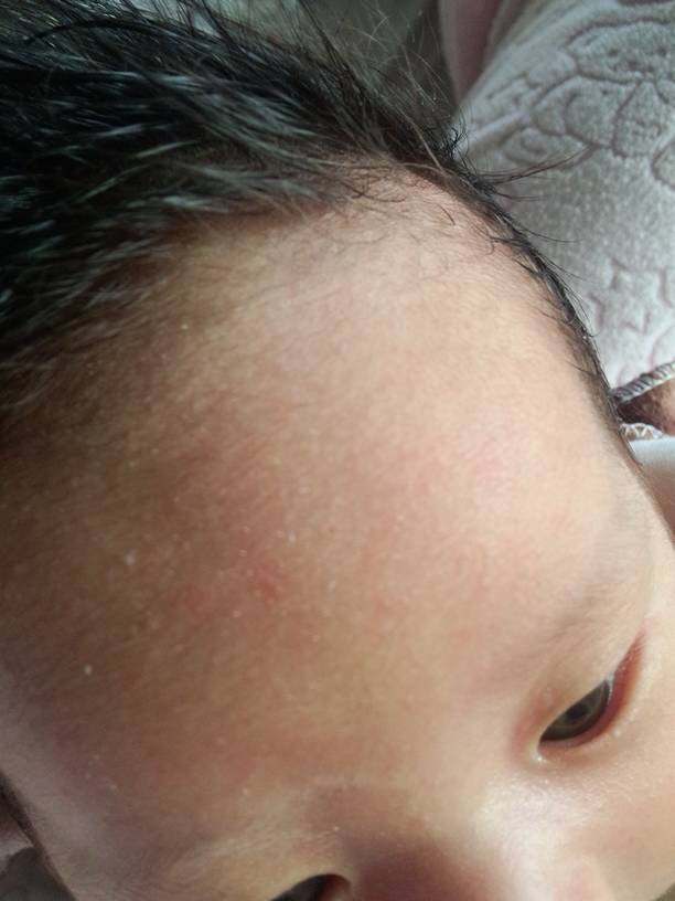 你好!应该是湿疹,不要担心。如果你是母乳喂养的话,除了你的饮食不要吃刺激性食物外,给宝宝多洗洗,保持皮肤干燥就行了。